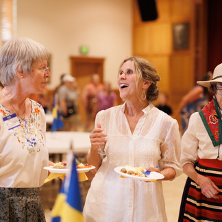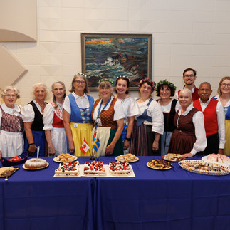 As everyone finished eating, storm clouds were brewing and there was a threat of lightning and hail, so we made the decision to move everyone indoors for music, singing and dessert. Dessert included a delicious locally-made cake that spelled out "1-1-0" for our 110th Anniversary! As well as wonderful contributions from attendees. Skandilocity entertained the crowd with beautiful music, and Annette Johansson, Scott Clarkson, Ingrid Childs, Eija Vesterqvist and Robert Turnquist led us in some group singing.